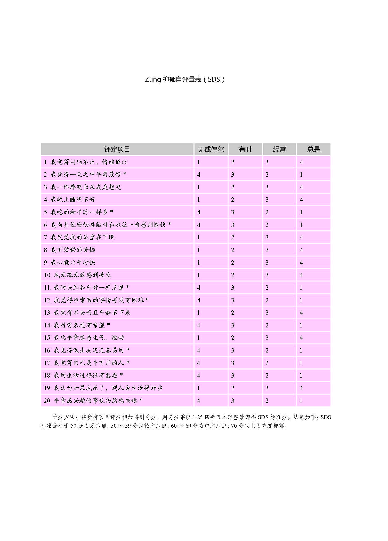 Zung 抑郁自评量表(SDS)