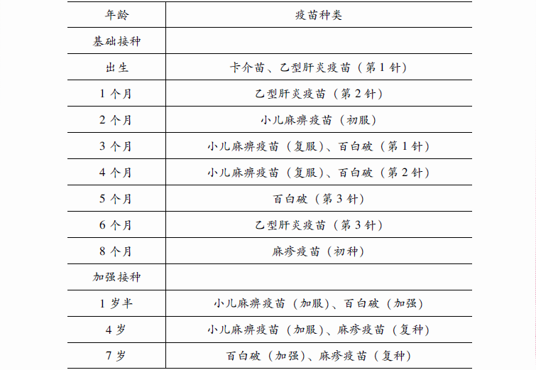 在我国,根据特定传染病的疫情监测以及人群免疫状况的分析,有计划地使用疫苗对人群进行预防接种,以达到控制和消灭传染病的目的,称为计划免疫。常用的有儿童基础免疫和特殊人群的程序免疫。