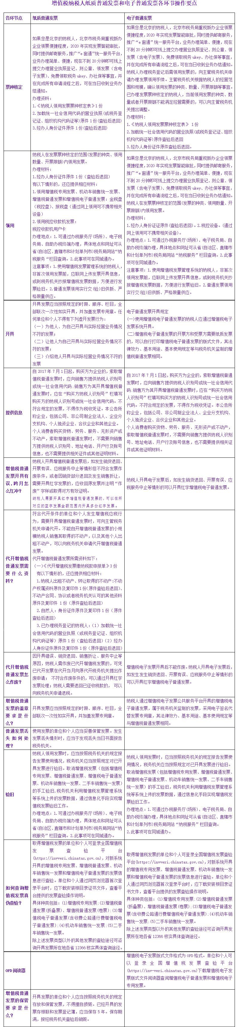 增值税纳税人纸质普通发票和电子普通发票各环节操作