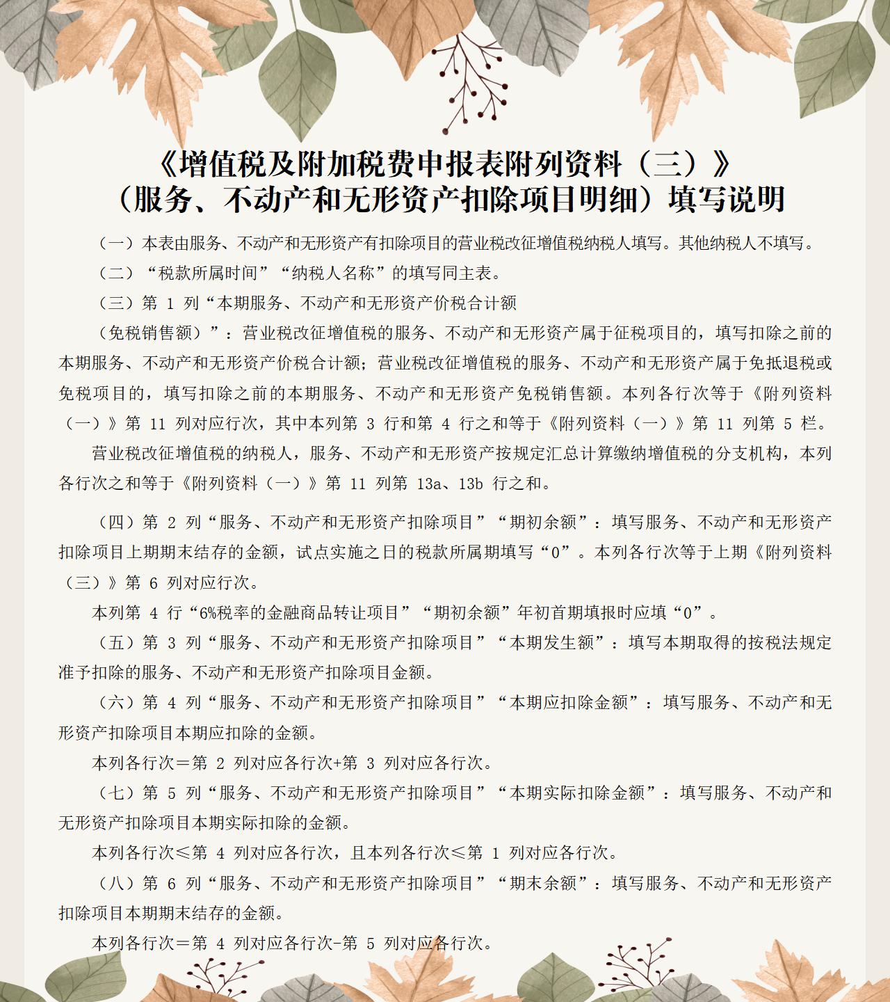 《增值税及附加税费申报表附列资料(三)》(服务、不动产和无形资产扣除项目明细)填表说明