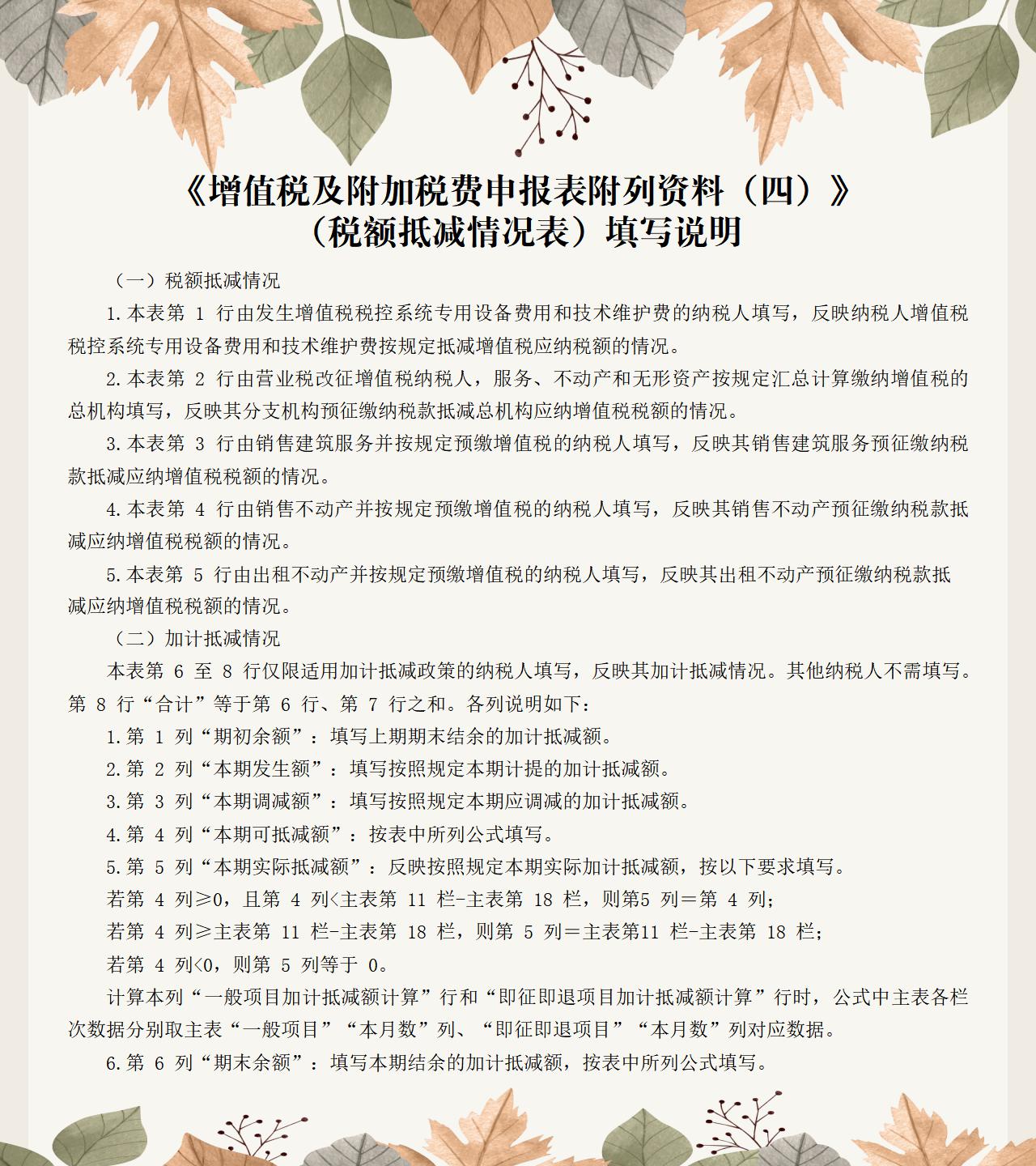 《增值税及附加税费申报表附列资料(四)》(税额抵减情况表)填写说明