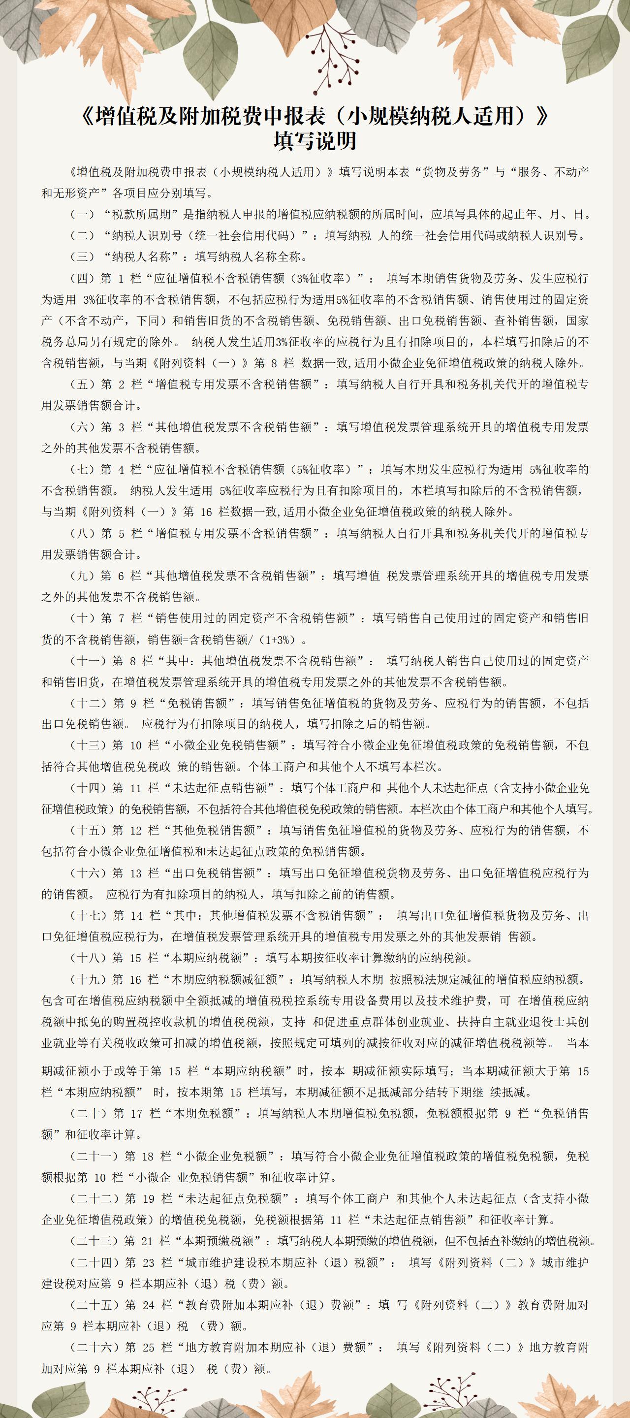 《增值税及附加税费申报表(小规模纳税人适用)》填写说明