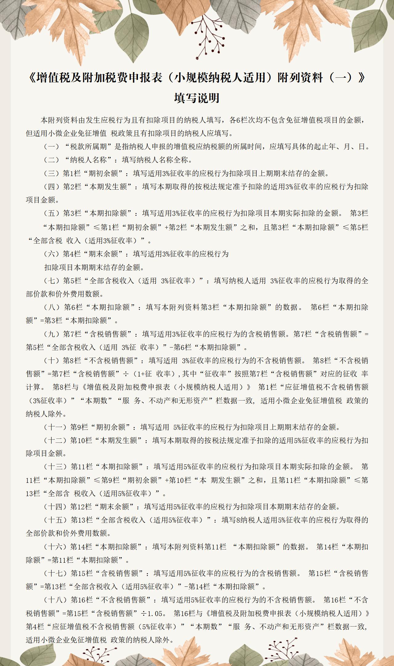 《增值税及附加税费申报表(小规模纳税人适用)附列资料(一)》填写说明