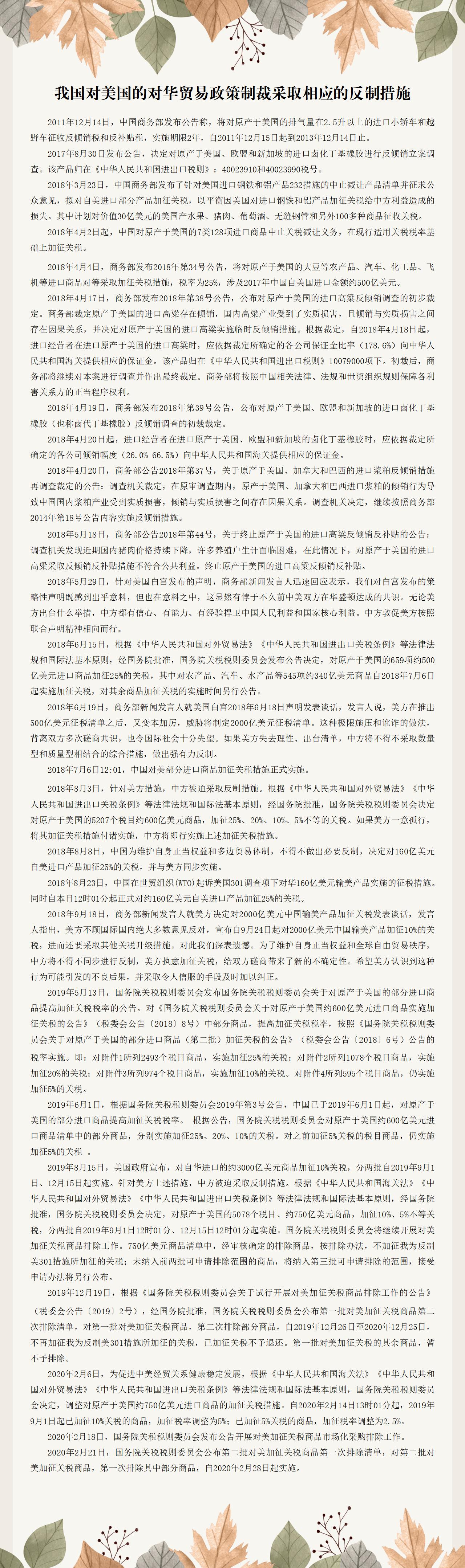 我国对美国的对华贸易政策制裁采取相应的反制措施
