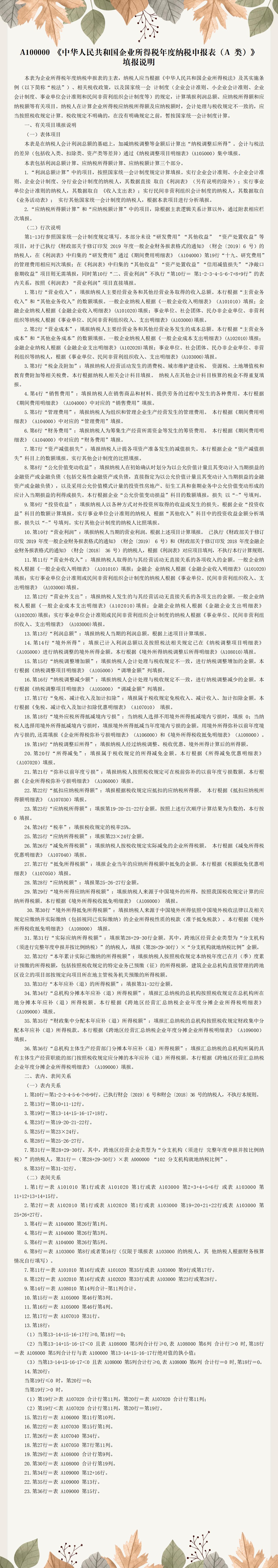 《中华人民共和国企业所得税年度纳税申报表(A 类)》 填报说明
