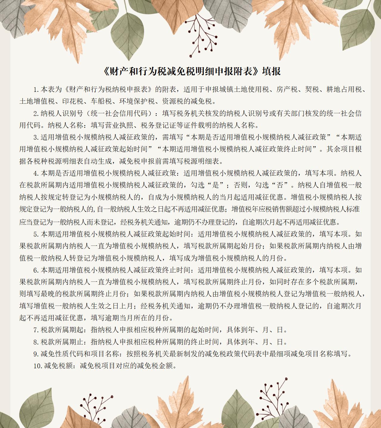 《财产和行为税减免税明细申报附表》填报说明