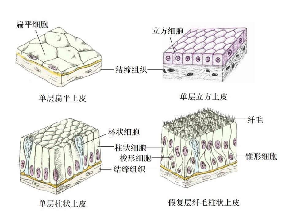 由一层上皮细胞组成,根据细胞的形态可以分为四种(图1)。
