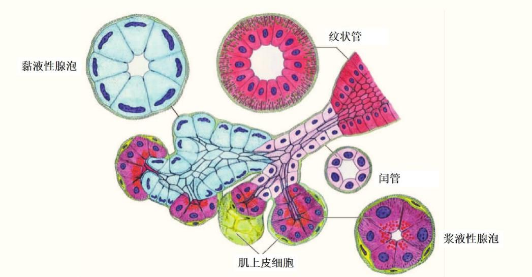 图4 腺泡及导管模式图
