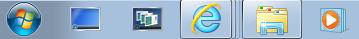 Windows 7全新的任务栏融合了快速启动栏的特点,每个窗口的对应按钮图标都能够根据用户的需要随意排序,点击Windows 7任务栏中的程序图标就可以方便地预览各个窗口内容,并进行窗口切换。或当鼠标掠过图标时,各图标会高亮显示不同的色彩,颜色选取是根据图标本身的色彩(图1)。