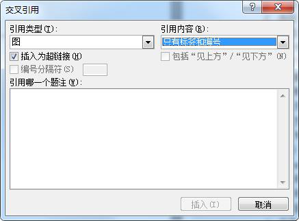 ③在该对话框中,选择引用类型、设定引用内容,指定所引用的具体题注。