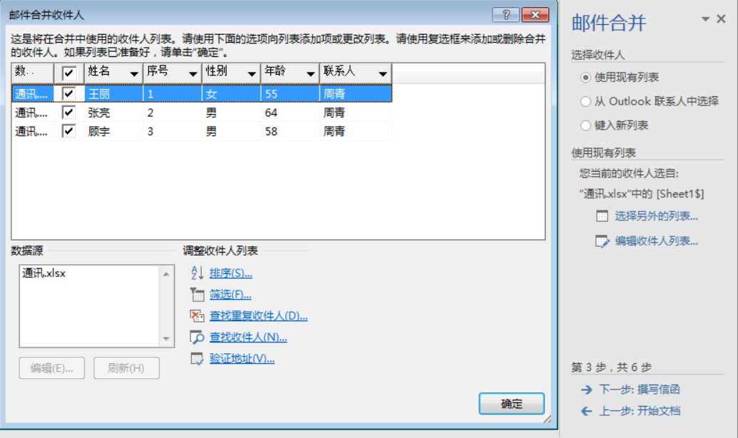 利用向导进行邮件合并的过程比较繁琐,适合不太熟悉邮件合并程序的新手使用。当对邮件合并流程熟练掌握后,可以直接进行邮件合并。