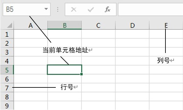 每一个单元格都有一个地址,地址由“行号”和“列标”组成,列标在前,行号在后,如,第8行、第7列的单元格地址是“G8”。列标由字母表示,如A~Z、AA ~AZ、BA ~ BZ、…、IA ~ IV、…、XFD;行号由数字表示,如1 ~ 9、10 ~ 100、…、1048576(图2)。