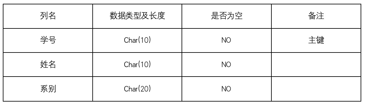“学生”表Student由学号(Sno)、姓名(Sname)、性别(Ssex)、年龄(Sage)、所在系(Sdept)五个属性组成,可记为:Student(Sno,Sname,Ssex,Sage,Sdept) Sno 为关键字。