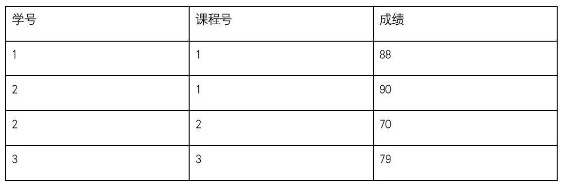 “学生选课”表SC由学号(Sno)、课程号(Cno)、成绩(Grade)三个属性组成,可记为:SC(Sno,Cno,Grade) (SNO, CNO) 为关键字。
