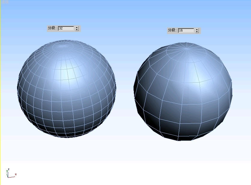 【分段】的概念很重要,分段数越大,物体越细腻,但所占用的资源也越大,分段数越小,物体越粗糙,但所占用的资源也越小,做图的速度也可以加快。初学者往往会在质量和效率之间找不到合适的平衡点,要么使得场景特别复杂,操作困难,运行缓慢;要么使得场景中的物体粗糙,没有细节。如图4.2.7~图4.2.12所示。