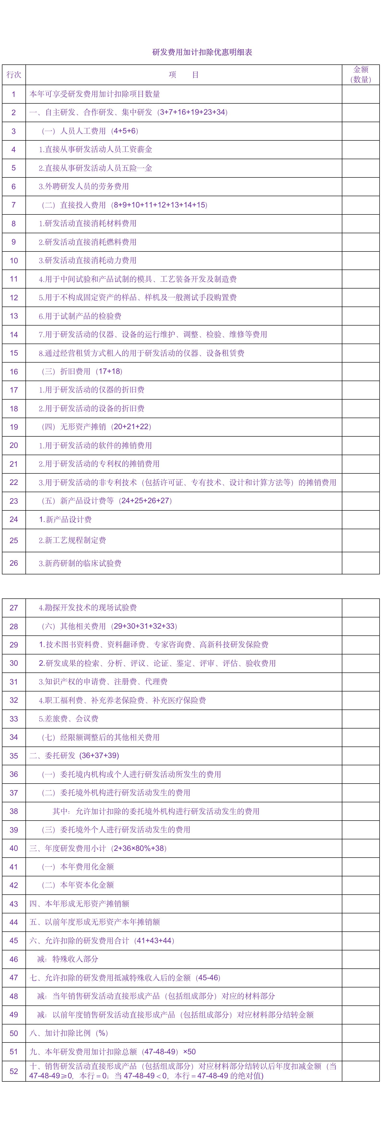 研发费用加计扣除优惠明细表