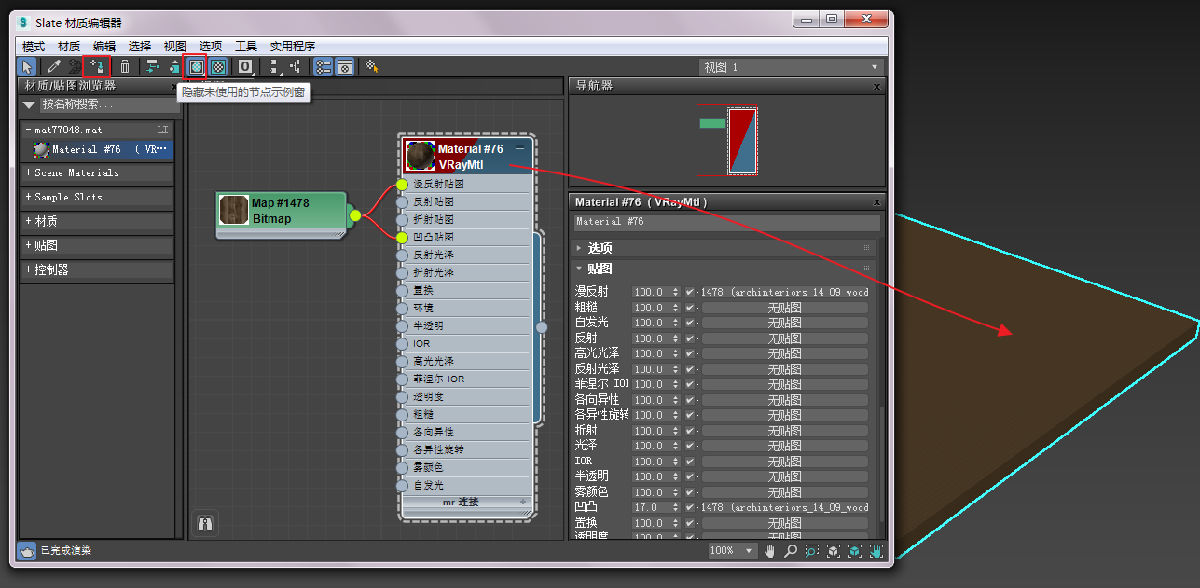 选择地面物体,按M键,打开材质编辑器,双击导入进来的已经做好贴图的木板材质。按