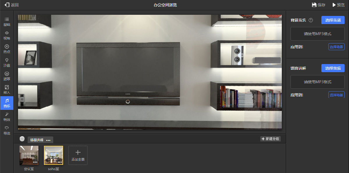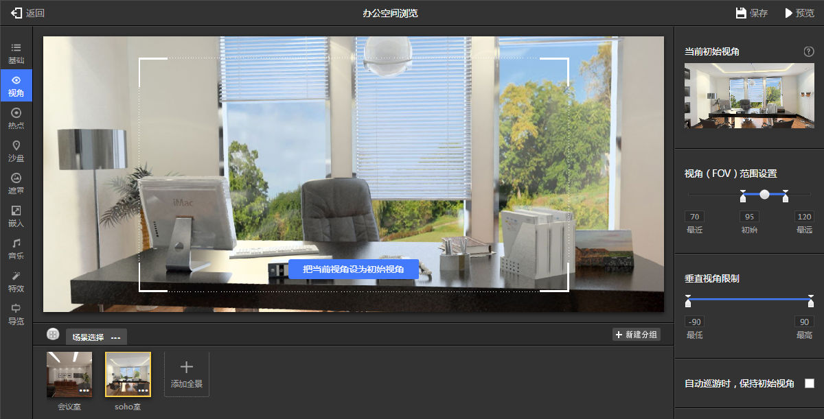 一键导览功能,如图9.3.21所示。类似于设置好了路径,不需要操作,一路展示下去。设置完成后,点击保存,就可以预览了。如果觉得还需要改动的话,可以随时更改。