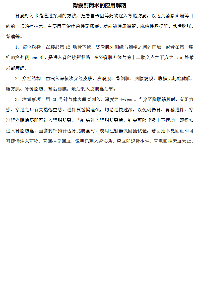 肾囊封闭术的应用解剖