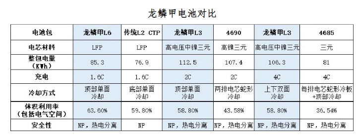 蜂巢能源L系列短刀电池包括L300、L400、L500到L600四大系列产品,覆盖1.6C~4C充电规模,覆盖乘用车、商用车、储能、工程机械、非高速电车等使用场景,以及从无钴、三元到全域化学体系。附蜂巢能源官方公布的规格表。