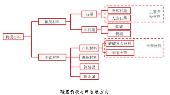 趋势二:硅基等负极材料是未来发展方向,硅碳与硅氧为主要技术路线