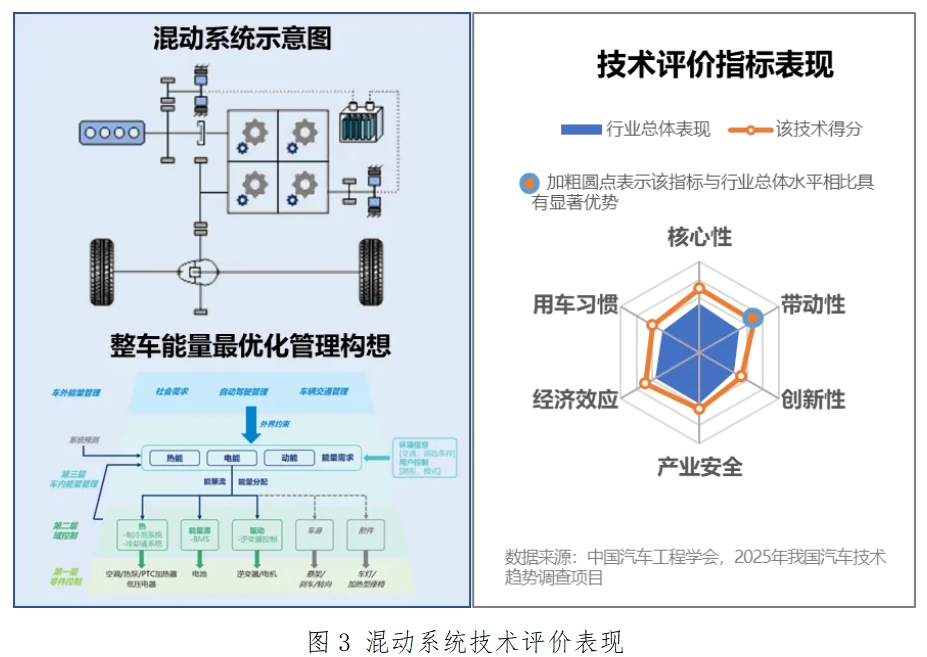 技术发展趋势:过半数车企将在混动车型上量产应用智能化动力控制策略。技术评价表现如图3所示。