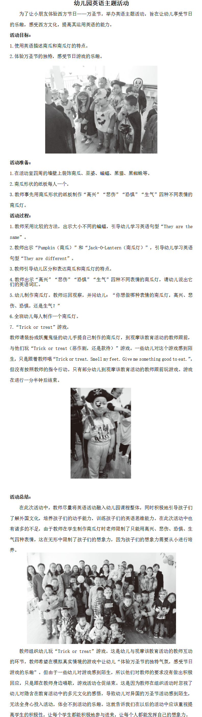 幼儿园英语主题活动
