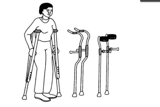 1)拐杖的选择要求:使用拐杖最重要的是要长度合适、安全稳妥。拐杖的长度包括腋垫和拐杖底部橡胶垫,简易计算方法:使用者身高减上40cm。