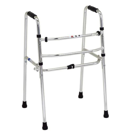 3. 助行器 助行器是一种用铝合金材料制成的四边形金属框架,自身轻,可将患者保护其中,有些助行器还带脚轮(5-3)。其支撑面积大、稳定性好,适用于上肢健康,下肢功能较差者。
