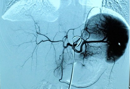 (2)出血的栓塞:晚期肿瘤常引发大出血,如不及时控制,常引起其它并发症,导致死亡。如肺癌、膀胱癌、胃底食管静脉曲张破裂等,该类患者应行急诊介入治疗,栓塞其供血血管,控制出血。如支气管动脉、髂内动脉、胃冠状静脉等。