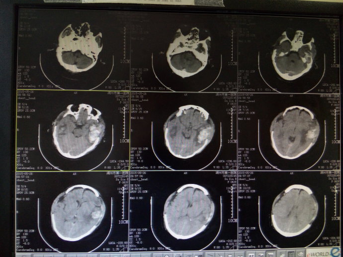 迟发性外伤性颅内血肿指伤后首次CT检查时无血肿,而在以后的CT检查中发现了血肿,或在原无血肿的部位发现了新的血肿,此种现象可见于各种外伤性颅内血肿。可能是外伤时血管受损,但尚未全层破裂,因而CT检查未见血肿;伤后由于损伤所致的局部二氧化碳蓄积,酶的副产物释放以及脑血管痉挛等因素,使得原已不健全的血管壁发生破裂而出血,形成迟发性血肿。表现为伤后经历一段病情稳定期后,出现进行性意识障碍加重等颅内压增高的表现,确诊须依靠多次CT检查的对比。迟发性血肿常见于伤后24h内,可发生在脑内、硬脑膜下或硬脑膜外,以迟发性脑内血肿较多见。
