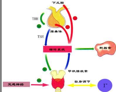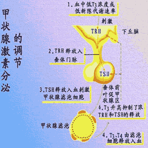 甲状腺素是以碘和酪氨酸为原料在甲状腺腺细胞内合成。甲状腺腺细胞有很强的摄取碘的能力。人体每天从饮食摄取100~200 mg碘,其中约有1/3碘进入甲状腺。甲状腺含碘总量约 8 000 mg,占全身含碘量的90%。甲状腺功能亢进,泵碘能力超过正常,摄入碘量增加;反之摄入碘量减少。故临床把甲状腺摄取放射性碘(131I)的能力作为常规检查甲状腺功能的方法之一。