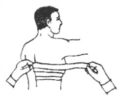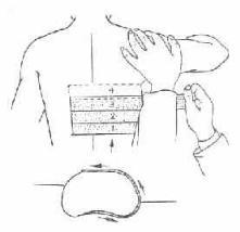 胶布叠瓦式固定方法是用5~7cm宽的胶布数条,在呼气状态下自后而前、自下而上作叠瓦式粘贴胸壁,相互重叠2~3cm,两端需超过前后正中线3cm,范围包括骨折肋骨上、下各一根肋骨。