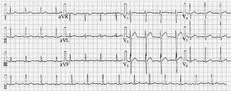 患者,女性,21岁,学生,今晨起自觉心悸1 h来诊,近日学习较紧张。查体无阳性发现。入院后心电图如下图所示。
