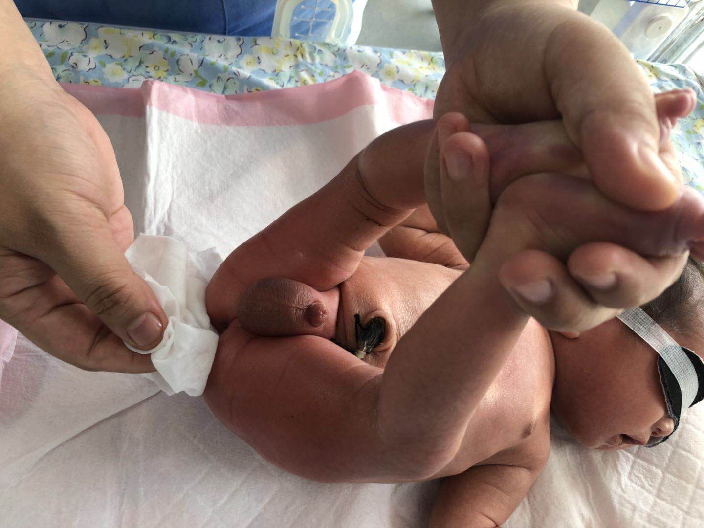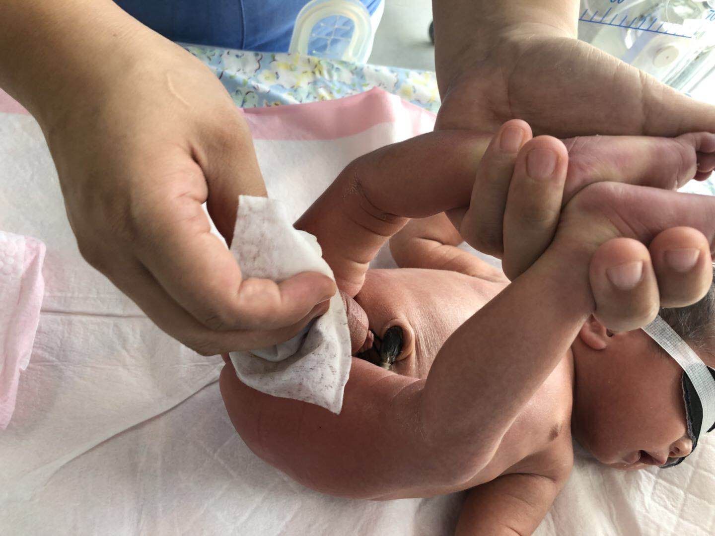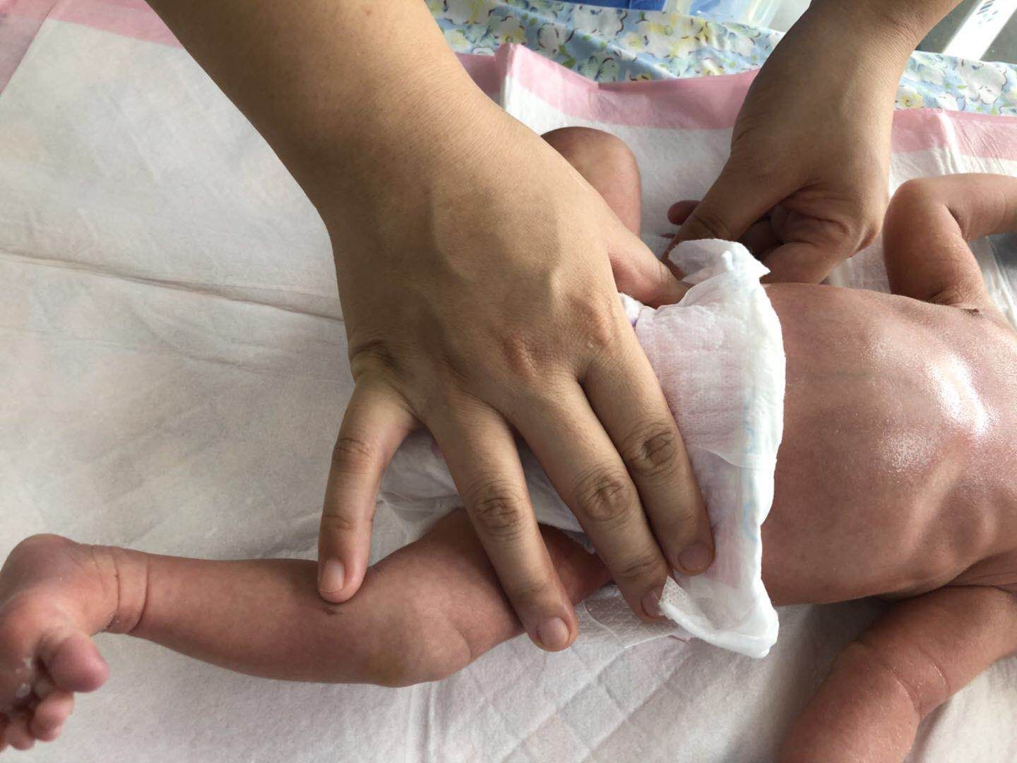 更换尿布时,护士解开纸尿裤,一只手抓住婴儿双腿,另一只手用尿片的前半部分较洁净处从前向后擦拭婴儿的会阴部和臀部,将清洁的纸尿裤垫于腰下,放下婴儿双腿,尿裤大小松紧适宜。新生儿脐带未脱落时,可将尿片前部的上端向下折,保持脐带残端处于暴露状态。
