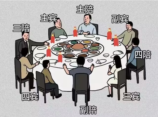 多人入席,座次有讲究。以尊重利他为基本原则,对应的角色相对而坐。