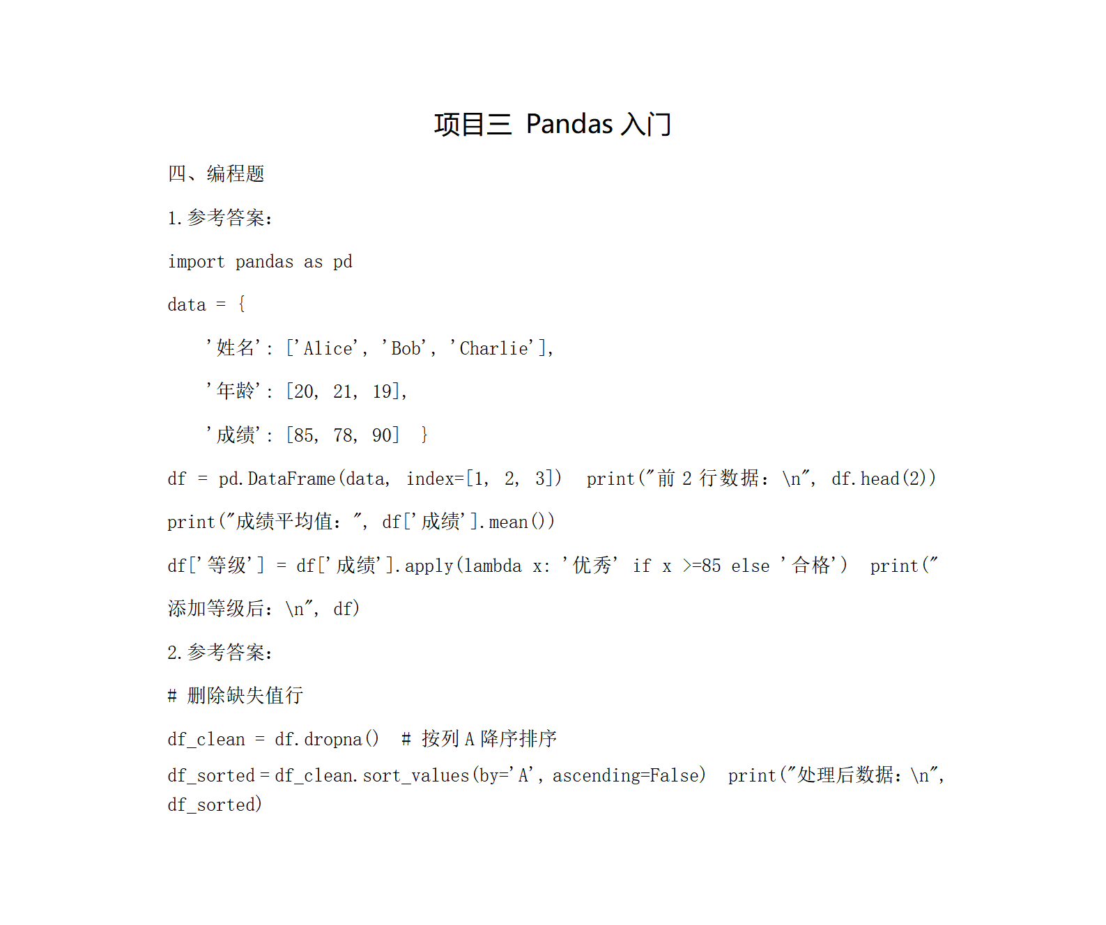 编程题参考答案